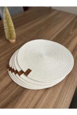 6’Lı Beyaz Renk Supla Takımı American Servis 32 Cm çap Hasır Örgü Tabak Altı