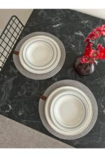 6’Lı Gri Renk Supla Takımı American Servis 32 Cm çap Hasır Örgü Tabak Altı
