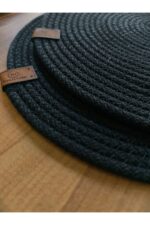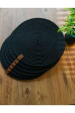 6’Lı Siyah Renk Supla Takımı American Servis 32 Cm çap Hasır Örgü Tabak Altı