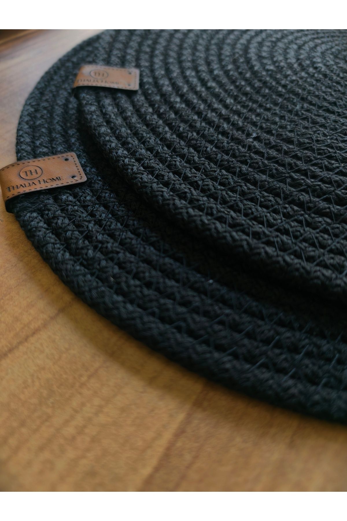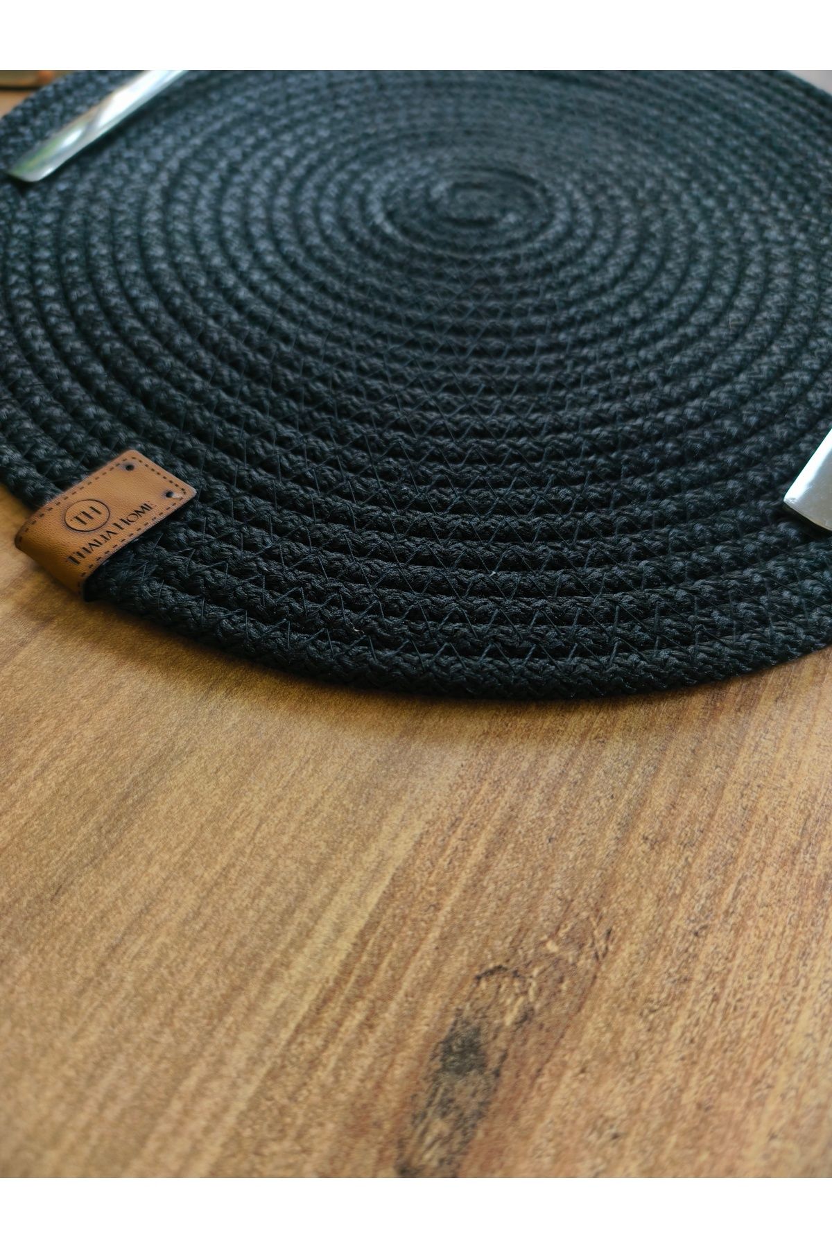 6’Lı Siyah Renk Supla Takımı American Servis 32 Cm çap Hasır Örgü Tabak Altı