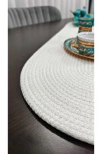 Beyaz Renk Jüt Hasır American Servis Runner Masa Sehpa Örtüsü 30×80 cm
