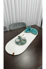 – %100 polyester malzemeden üretilmiş olup, dayanıklılığı ve uzun ömürlü kullanımı ile dikkat çeker.; – Kolay temizlenebilir yapısı sayesinde nemli bir bezle silerek pratik bir şekilde temizlenebilir; böylece hijyenik kalmasını sağlar.; – Oval şekliyle modern ve şık bir görünüm sunar, masa veya sehpanızda estetik bir dokunuş oluşturur.; – 30×80 cm boyutlarındaki bu runner, hem küçük hem de büyük masalar için ideal ölçülerdedir ve her türlü kullanım alanına uyum sağlar.; – Jüt hasır detaylarıyla doğal bir dokunuş katarken, materyalin sunduğu yumuşaklık hissiyle konforlu bir kullanım deneyimi sunar.; – Tek parça halinde gelen bu ürün, kolayca monte edilebilir ve mekanınıza anında sıcaklık katar.