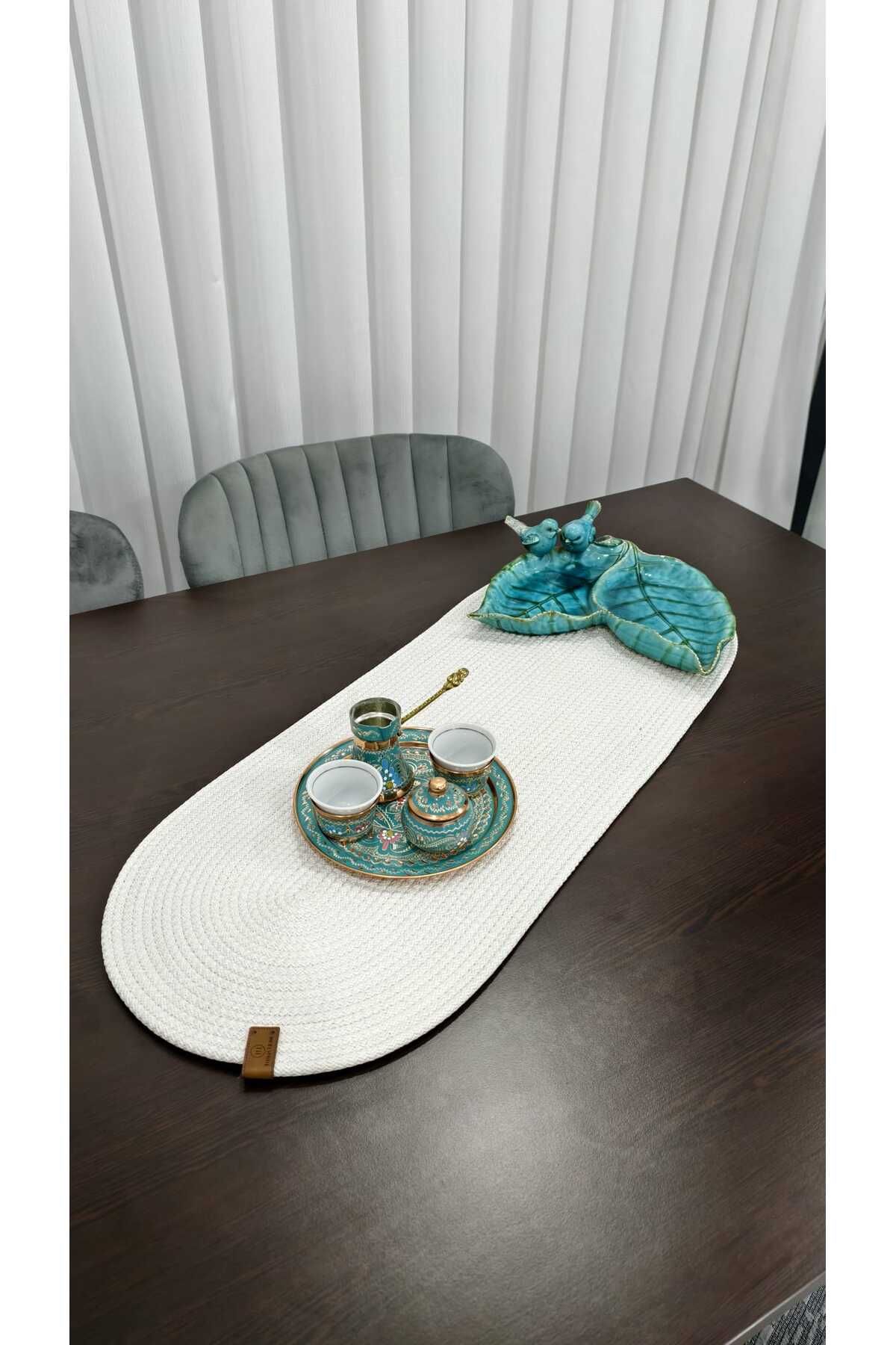Beyaz Renk Jüt Hasır American Servis Runner Masa Sehpa Örtüsü 30×80 cm