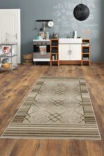 Geçişli Dokulu Çerçeveli Desen Kahve Renk Kaymaz Taban Yıkanabilir Dijital Baskı Halı Yolluk