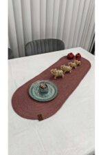 Gül Kurusu Renk Jüt Hasır American Servis Runner Masa Sehpa Örtüsü 30×80 cm