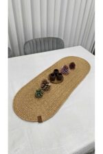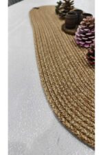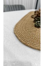 – %100 polyester malzemeden üretilmiş olup, dayanıklılığı ve uzun ömürlü kullanımı ile dikkat çeker.; – Kolay temizlenebilir yapısı sayesinde nemli bir bezle silerek pratik bir şekilde temizlenebilir; böylece hijyenik kalmasını sağlar.; – Oval şekliyle modern ve şık bir görünüm sunar, masa veya sehpanızda estetik bir dokunuş oluşturur.; – 30×80 cm boyutlarındaki bu runner, hem küçük hem de büyük masalar için ideal ölçülerdedir ve her türlü kullanım alanına uyum sağlar.; – Jüt hasır detaylarıyla doğal bir dokunuş katarken, materyalin sunduğu yumuşaklık hissiyle konforlu bir kullanım deneyimi sunar.; – Tek parça halinde gelen bu ürün, kolayca monte edilebilir ve mekanınıza anında sıcaklık katar.